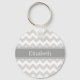 Lt Grey Wht Chevron Grey Name Monogram Keychain
