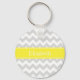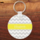 Lt Grey Wht Chevron Yellow Name Monogram Keychain