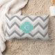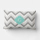 Lt Two Grey White Chevron Aqua Monogram Lumbar Pillow