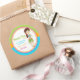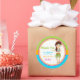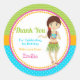 Luau birthday party favour sticker with cute Hawaiian icons, personalized with your child's name & thank you message.