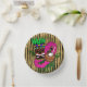 Personalize this luau birthday party bowl. bowl features a Totem, Lei and Coconut drink on a tropical bamboo background.