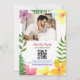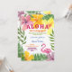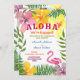 Invite guests in tropical style with this luau engagement party invitation featuring bold hibiscus flowers, palm leaves, and a playful flamingo. The double-sided design includes a QR code for RSVP, wedding website, and a photo of the couple—making it fun, functional, and beautifully personal. Ideal for beach, backyard, or destination celebrations.