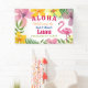 Welcome guests to your tropical celebration with this vibrant luau engagement party banner. Featuring watercolor hibiscus flowers, lush palm leaves, and a stylish pink flamingo, this design creates the perfect island vibe. Personalize with your names and event details. Great for beach parties, backyard luaus, or summer engagement events.