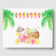 Luau Sweet 16 Guest Book with Hawaiian Theme. In fact, it can be for any luau party because all of the text is editable! This gorgeous watercolor print looks good enough to eat doesn't it? You can smell those fresh pineapple and melon slices and feel the breeze rustling through the palm trees. This scrumptious luau party buffet also has coconut cup mocktails, pink lemonade, melonade, tropical flowers, pink hibiscus and tropical palm leaves. There is a similar design on the back (with ice lolly bunting) and you can add your custom text to the spine.