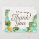 Rustic beach luau theme with tropical floral featuring plumeria, hibiscus, and pineapple thank you card.