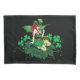 Red haired Irish fairy all in green with her pot of gold and green clovers.