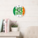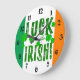 Festive green orange and white clock with starry font and seven green lucky shamrocks or four-leaf clovers. These are the true colours of the Irish flag. Green is for the Gaelic tradition; orange is for the followers of William the Orange; white stands for peace between them. Three and four-leafed clover is found world-wide and has been associated with nature magic, springtime, good health and prosperity since pre-Christian times. Four-leaf shamrocks or lucky clovers are particularly abundant in Ireland as they often occur in fields of white clover - hence the saying "Luck o' the Irish!". This is also a great clock for an Irish pub, community centre, sports team or Irish theme party. Cheers!