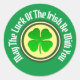 This sticker design a green background, with a yellow centre. The yellow centre has a green and white border where there is a shamrock. The text reads "May The Luck Of The Irish Be With You". This design can be customized.
