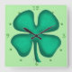 Lucky 4 Leaf Irish Clover green square wall clock
