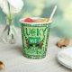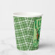 Lucky and I Gnome It St Patrick's Day Party Paper Cups. Funny quote image with a large green hat and two gnomes wearing green plaid. Green plaid wrapped around. Personalize this template.