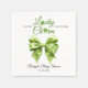 Lucky charm sage green bow with green clover St. Patrick's Day Irish baby shower paper napkins for girls. Celebrate the upcoming arrival of your little lucky charm with this adorable St. Patrick's Day-themed baby shower paper napkin! An elegant sage green coquette bow, decorated with bright green clovers, adds a touch of Irish whimsy. There also is the text "A little Lucky Charm is on the way," using shamrocks to replace two letters and set a joyful mood.