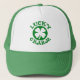 Green and white circle emblem with lucky charm in circular round text. Four leaf clover shamrock for the luck of the irish! Copyright © www.CuteComfy.com