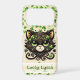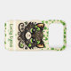 A charming black kitty adorned with gold swirls, glittering shamrocks, and sparkling green eyes.