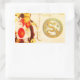 Chinese red lanterns with lucky ideogram and blossoms on pink background + golden Snake paper cut-out (image printed) + vertical wishes in Chinese + Chinese Snake ideogram + golden 2025 (original handwritting). Design on vertical rectangular sticker. Matching greeting card, postcard and more soon... Perfect for Chianese New Year of the Snake 2025.