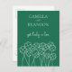 The front of this modern Save the Date postcard features the couple´s names, a catchy text: ´´got lucky in love´´ in a mix of elegant typography and modern handwritten calligraphy, and a lovely bunch of wild four-leaf clovers. All in white on a lovely emerald green background. The back includes the informal invitation and more info about the event. This postcard is easily customized through the ´´Personalize´´ button. Feel free to message me with any questions and custom orders, I will be happy to help! Just please note that I can't modify or interfere with an existing order. Browse my Wedding Collection for more invitations and other matching products like rubber stamps, RSVP cards, and more!