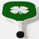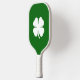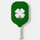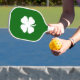 Emerald Green Lucky Irish Four Leaf Clover with Green and White Stripe Pickleball Paddle - Customize my template with your own personalized names, words, colours!