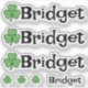 Cute name stickers featuring a lucky clover illustration. One sheet contains three stickers with the name and clover placed together, one sticker with just the name and three isolated shamrock stickers. Personalize with your name to create name labels that you can use to mark your possessions.