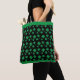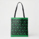 Lucky green four-leaf clover pattern on black background Tote Bag.