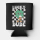 Lucky Dude Shamrock St Patricks Day Irish Groovy Can Cooler