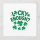 This playful, green typography design asks a fun question: "LUCKY ENOUGH?" Perfect for celebrating St. Patrick's Day, embracing Irish heritage, or just showing off your lucky side! The bold, catchy text is decorated with various shamrocks and four-leaf clovers. This design makes a great gift for anyone who loves the holiday, enjoys a bit of luck