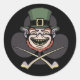 Lucky evil leprechaun with a green top-hat and crossed shillelaghs, on a shamrock background. Very lucky drinking shirt! Tees, hoodies, gifts.