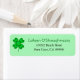 Ce modèle fantaisiste de St. Patrick's Day présente un trèfle à quatre feuilles de shamrock chanceux à plusieurs nuances de vert contre un arrière - plan vert pastel. Le nom et l'adresse personnalisables apparaissent à droite du trèfle dans la typographie populaire, avec le nom apparaissant en vert. Ces étiquettes correspondent bien aux cartes de la Saint Patrick de la même collection, et ils sont également une excellente façon d'inclure le symbolisme de la chance et du printemps dans votre correspondance toute l'année.