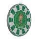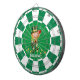 Lucky gnome with gold confetti and heart on emerald green and white Dart Board. Text can be personalized.
