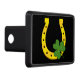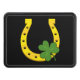 Lucky Golden Horseshoe with Shamrock on Black Trailer Hitch Cover