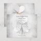 This wedding invitation design features a white lucky clover with three heart shaped leaves on a grungy grey background. The text is grey, names are dark green and & on back is orange. It's great for any wedding and perfect for Irish and St. Patrick's Day wedding celebrations. ~
