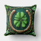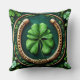 Vibrant illustration depicting a golden horseshoe paired with a lush four-leaf clover and decorative green vines symbolizing luck, prosperity, and nature.