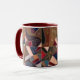 This striking two-tone mug features the beautiful patchwork crazy quilt design of an unidentified early twentieth century American craftsperson. Enjoy the intricate vintage details - including a horse, butterfly, flower and cat. See if you can spot the horseshoe, too. According to legend, a horseshoe facing upwards in a "U" shape is said to keep evil out and bring good luck into your home! Featured here is a maroon handle/interior, but black is also lovely with the quilt tones, or select another colour you like from the available options. A perfect gift for a quilt-lover or antique-lover, for a housewarming, or for a fan of Americana. (Original quilt: Smithsonian American Art Museum, Gift of Raymond Vlasin and family, with deepest appreciation for the many friends with whom Claire Vlasin quilted).