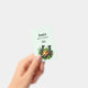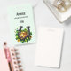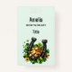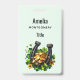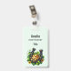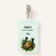 Name badge with a St. Patrick's Day themed image. A black and gold horseshoe sitting in a bed of green clover with shiny gold coins.