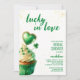 Sweet lucky in love bridal shower theme invitation! Features a cupcake with shamrock sprinkles and plenty of sparkle. Pretty green heart pick in the cupcake for extra love. Background has gold foil glitter scattered about. Pretty typography adds to the look. Such a wonderful design for your bridal shower. See coordinating items in our shop, Enchanted Finch.