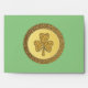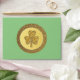 This awesome envelope features a graphic image of a gold coin with two shades of gold. The outer circle has a rough texture. Inside the inner circle of the coin is a textured golden shamrock made up of 3 leaves and a stem.
