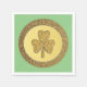 This awesome set of paper napkins features a graphic image of a gold coin with two shades of gold. The outer circle has a rough texture. Inside the inner circle of the coin is a textured golden shamrock made up of 3 leaves and a stem.