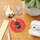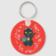 Cute red button style key chain with black Japanese maneki-neko. Nice small gift or Christmas stocking stuffer.