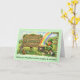 Cartoon St Patricks Day Card featuring a happy Leprachaun sitting on a toadstool next to a crock of gold. He has a lucky black cat and a rainbow. Message reads 'Wishing you a day filled with Luck, Laughter and Irish Cheer'. Easily personalise this card by editing the template text. Thanks for viewing my cartoons!