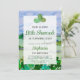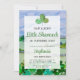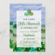 This unique first birthday invitation is decorated with a textile art Irish country scene with shamrocks and stylish script typography.