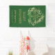 A green, gold, lucky 4 leaf clover banner for Baby Shower on the LUCKY occasion of St. Patrick's Day for the arrival of little shamrock. The green botanical design features heart shaped shamrocks on the border. Perfect for matching the green shamrock theme. Your guests will admire this banner. The TEXT is easily customizable with your words.