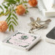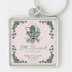 This soft pink and green "Lucky Little Shamrock" gender neutral baby shower key chain features a chic hand-drawn Irish Victorian baby carriage adorned in soft green tones and surrounded by green lucky shamrocks, all against an elegant soft pink background. Ideal for St. Patrick's Day baby shower gift!