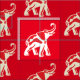Monochromatic red and cream with elephant pattern. Elephant repeats. Too cute.