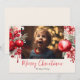 This beautiful red poinsettia Christmas card features a festive watercolor design and space for a photo. Easily customize these cards using the personalization feature.