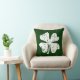 Green shamrock clover St Patricks Day throw pillow. Vintage look four leaf clover. Grunge style vector design for St Paddys Day party. St Pattys Day decoration. Irish pride decor.