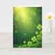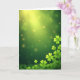 Designed with a dreamy forest feel, the scene glows in layered greens with a warm golden light spilling in from the upper left. Along the right and bottom edges, a cluster of shamrocks (some like four-leaf clovers) curls upward, their leaflets gently opening as if reaching toward one another in a quiet, affectionate way 💚. The foreground leaves are sharply detailed, while the background fades into soft, shadowy foliage that makes the clovers feel close and intimate. A gentle gradient shifts from honey-gold near the top left into deep emerald across the rest of the card, giving the setting a calm, early-morning look. Scattered throughout the middle and back are small glowing orbs, like fireflies or dewdrops catching light, adding a soft sparkle ☘️. The greeting text sits near the upper left in light gold, with a smaller line beneath it in pale green to keep the focus on the glow. The shamrocks frame the lower corner with curved stems, bright highlights on their edges, and dim, leafy shapes receding into the background.