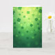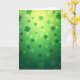 This card features a vertical field of three-leaf clovers drifting across the page, like a quiet shower of lucky finds shared between close friends 💚. Dark green shamrocks in many sizes float at different angles, giving the scene a gentle sense of movement without a single main character. The background fades from a bright yellow-green near the top to a deeper emerald toward the bottom, like light settling through leaves at dusk. Soft, out-of-focus circles in green and gold hover around the clovers, adding the kind of glow that feels like an inviting glance held a moment longer ☘️. The sharper clover shapes against the misty circles create a tender contrast, as if the air itself is humming with friendly warmth. A short St. Patrick’s Day greeting sits near the top in light lettering, easy to spot against the lighter gradient, with a smaller line of text placed near the bottom in a pale green. Share St. Patrick’s Day sentiments with someone you care about, and let the scattered shamrocks and glowing bokeh dots fill the frame from top to bottom.