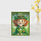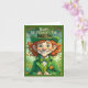 🍀A cheerful young girl dressed as a leprechaun beams with excitement, holding a beautifully wrapped golden gift. She wears a vibrant green outfit, complete with a top hat adorned with shamrocks, a bow tie, and golden buttons. The background captures a festive city scene with confetti in the air, enhancing the joyful spirit of St. Patrick’s Day. The image radiates luck, happiness, and celebration.✨