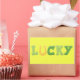 A great St. Patrick's Day themed sticker, the background is yellow with "Lucky" written in green Irish themed letters. Order yours today!