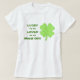 Perfect for St Patrick's Day or all year long, this shirt for her features a green shamrock filled with hearts. The green text at the left side says "Lucky to be loved by an Irish guy!"