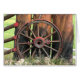 Old western wagon wheel with lucky horseshoes photo greeting card. Great for Fathers day or old but still great masculine birthday