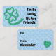 I'm So Lucky We're Friends! With a light blue heart pattern background and a cute bright green glitter-look clover, these classroom Valentines are perfect for a young child's classroom party. Personalize and preprint your child's name on the cards to make filling out cards for an entire class faster and easier. Or choose to delete the name from the template and order blank cards. There is plenty of space to write names on these cards. --> NOTE: This card does NOT have real glitter.